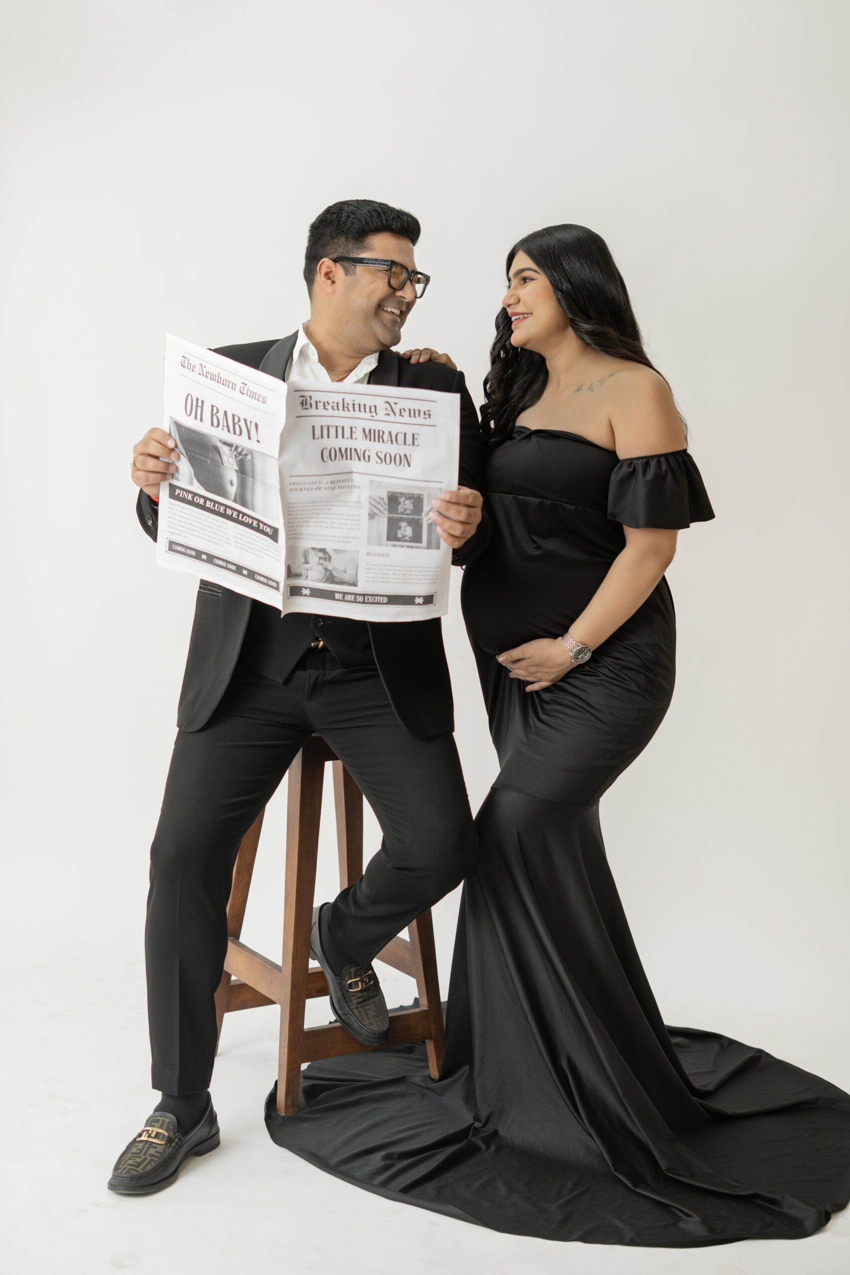 High-quality maternity portraits with soft lighting, elegant poses, and creative compositions.